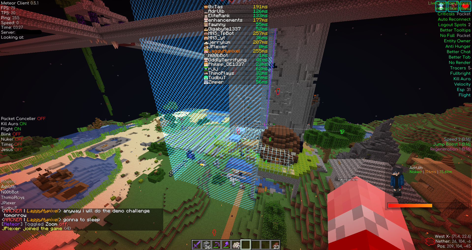 He also made lots of challenges, where you have to read the Minecraft source code and write a exploit in your Minecraft client. I solved all of those.